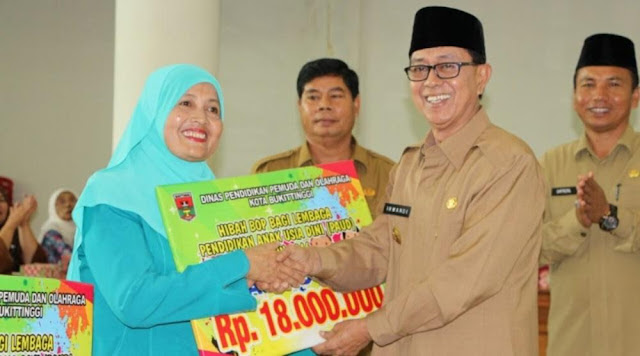 Minang Terkini : Wakil Walikota Bukittinggi, Irwandi, telah menyerahkan Bantuan Operasional Penyelenggaraan Pendidikan Anak Usia Dini (BOP-PAUD) senilai Rp 1,2 Milyar pada lembaga PAUD Kota Bukiittinggi.